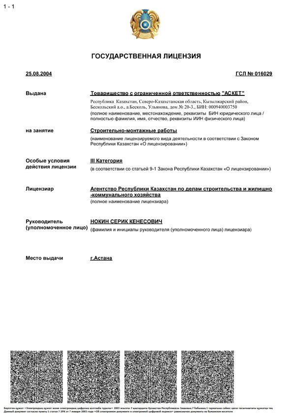 Гос. лицензия на строительно-монтажные работы