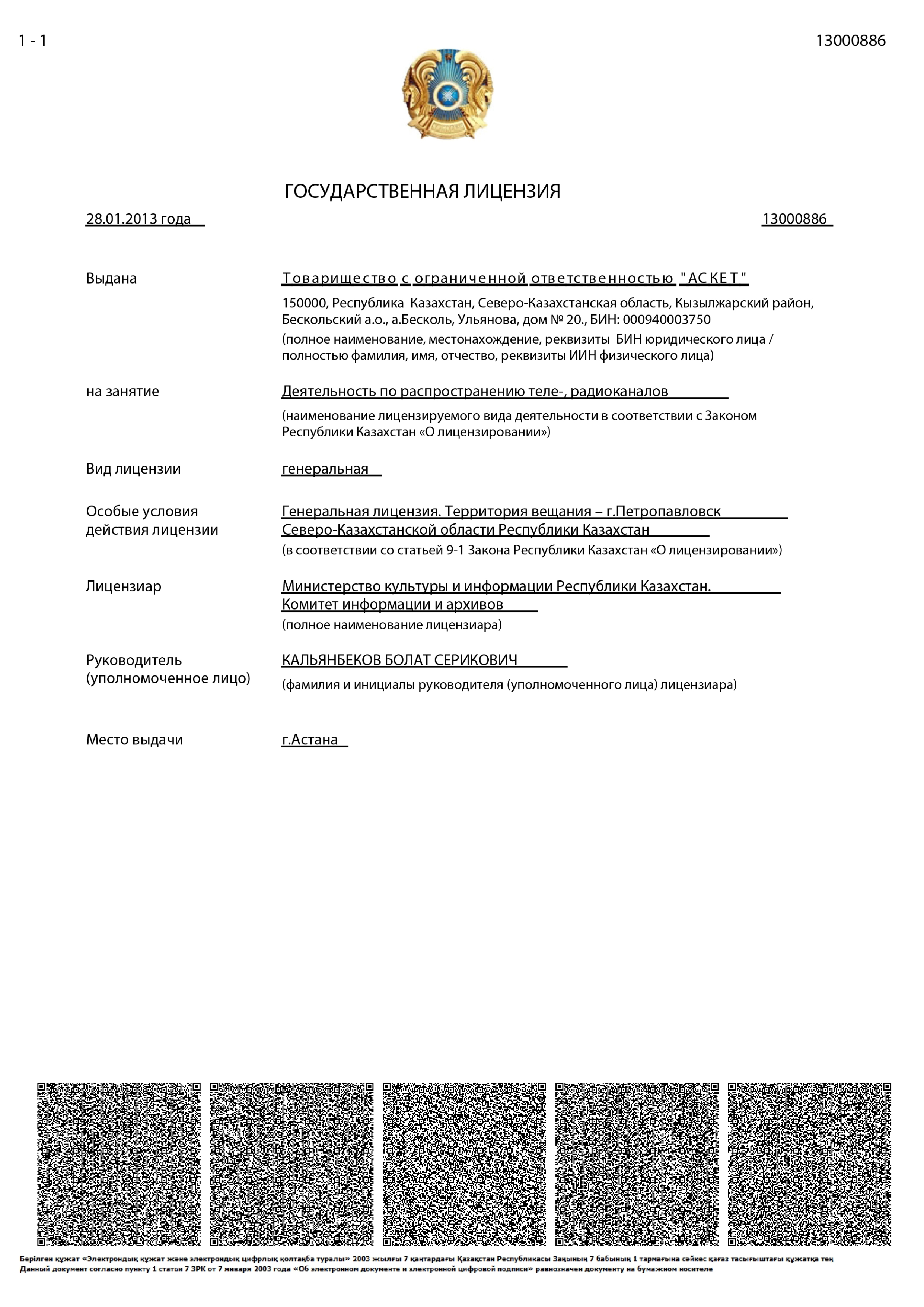 Гос. лицензия на предоставление услуг в области связи